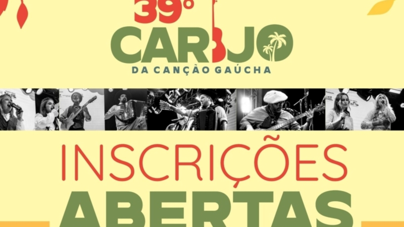 As inscrições para o 39º Carijo da Canção Gaúcha iniciaram no domingo, 15 de março, e seguem até 14 de abril. Os compositores devem inscrever suas músicas exclusivamente pelo site oficial do evento.